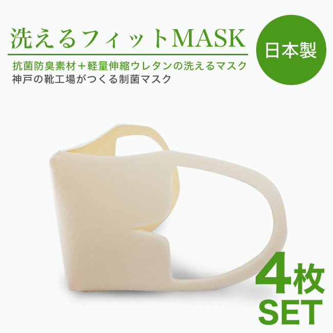 【クレジット決済・代引き決済のみ可能】【4月23日〜順次発送】洗えるフィットMASK〜神戸の靴工場でつくる日本製制菌マスク:4枚SET【KP-MASK】※メール・電話・FAXでの注文不可